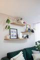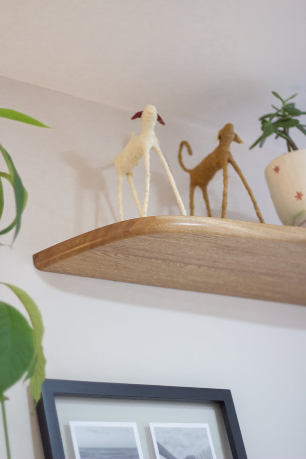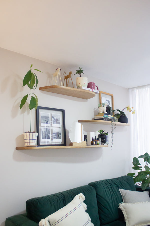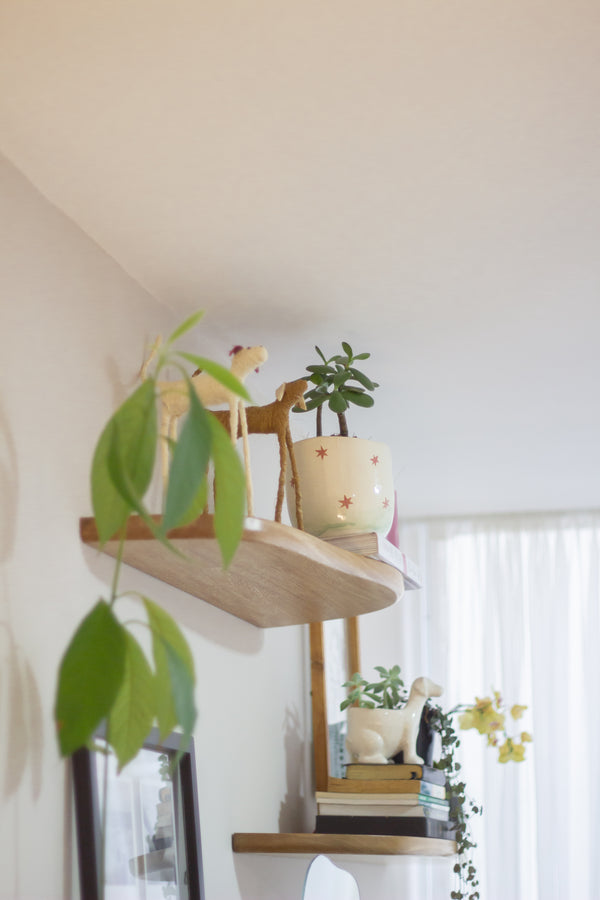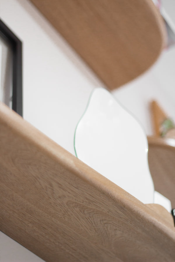 Nuestras repisas orgánicas son hechas en roble macizo, e incluyen un acabado lacado que protege sus superficies del polvo y la suciedad. Son curvas e irregulares tipo flotantes con soportes invisibles, al ser de madera, no ceden ni se tuercen con el tiempo. ¡Dale un estilo personalizado a tu espacio, ideal para plantas, libros y objetos decorativos!